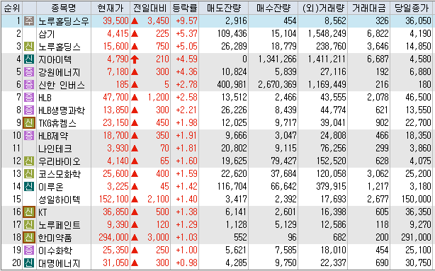 20. HLB테라퓨틱스(7.76%) : 상승 이유 알 수 없음