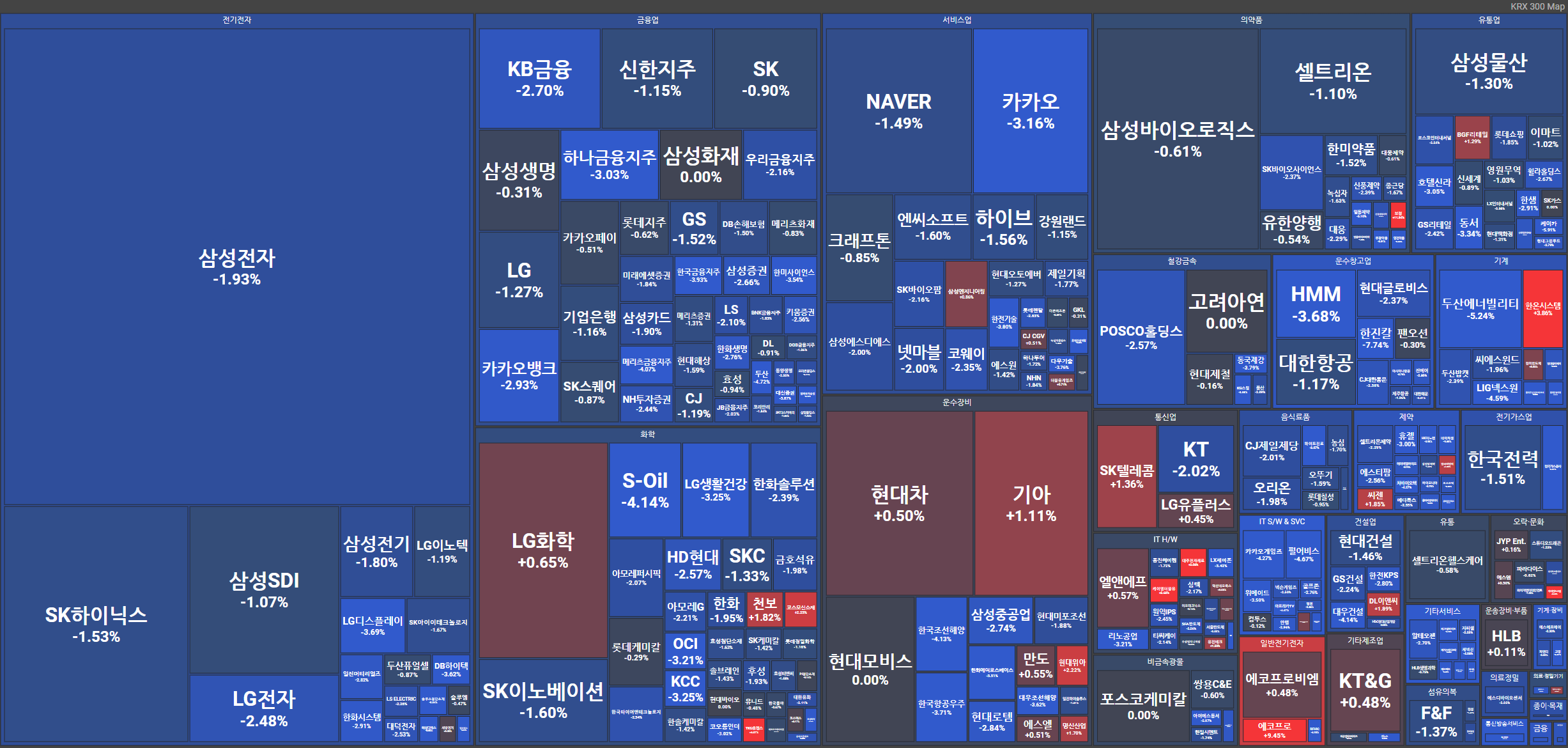 현대중공업, 한국조선해양, 대우조선해양 등 조선 테마가 하락.